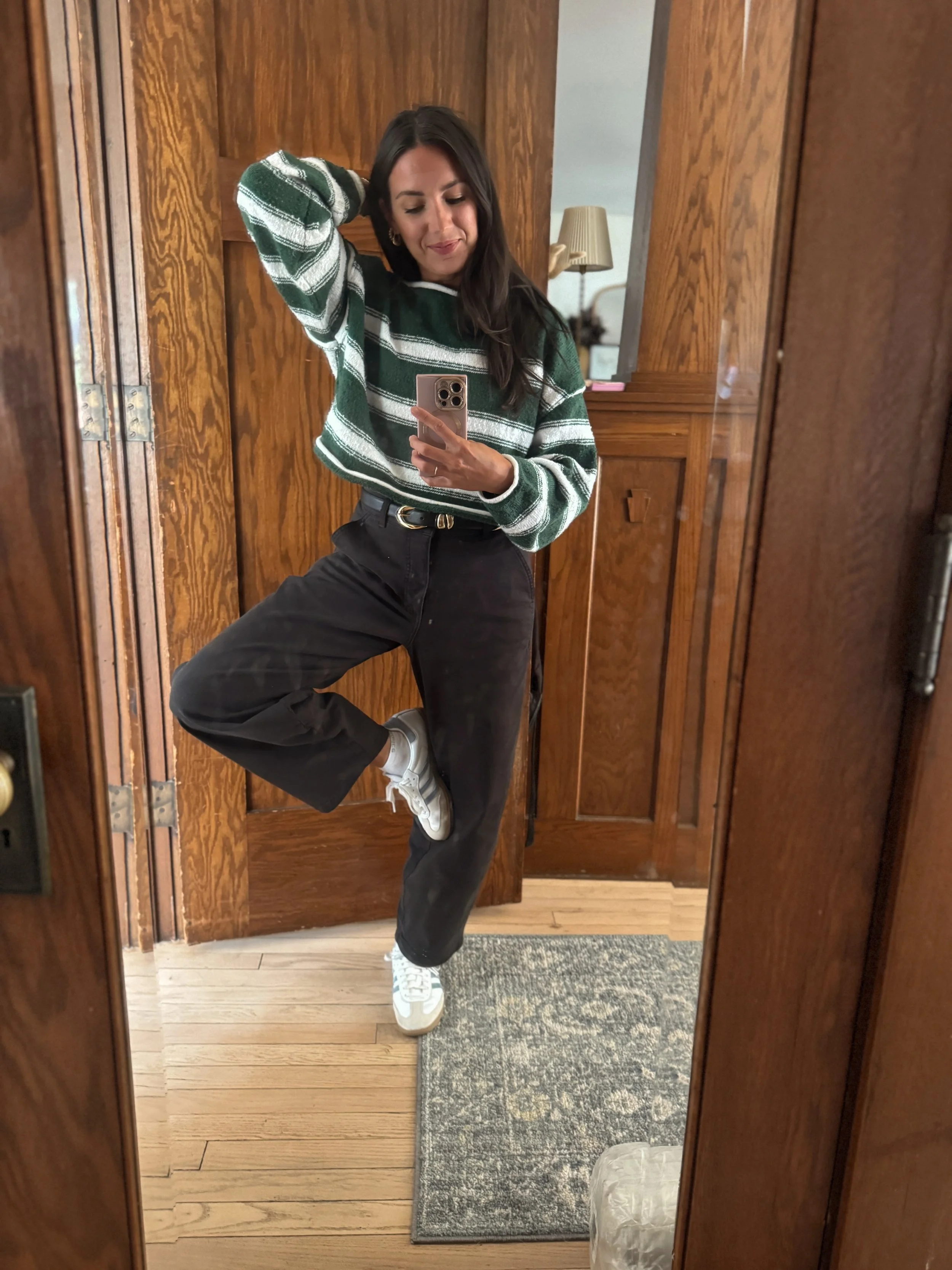Stripes are my love language 💚 and this look is proof. Paired with curved-leg denim and casual sneakers, it’s the kind of outfit that instantly feels like fall without even trying. Cozy, effortless, and just the right mix of polished and relaxed—it’s perfect for school drop-off, coffee runs, or a slow weekend afternoon. 🍂 A reminder that sometimes the simplest pieces make the best outfits. 🛒 Shop this look along with a few of my other favorite cozy finds right here!