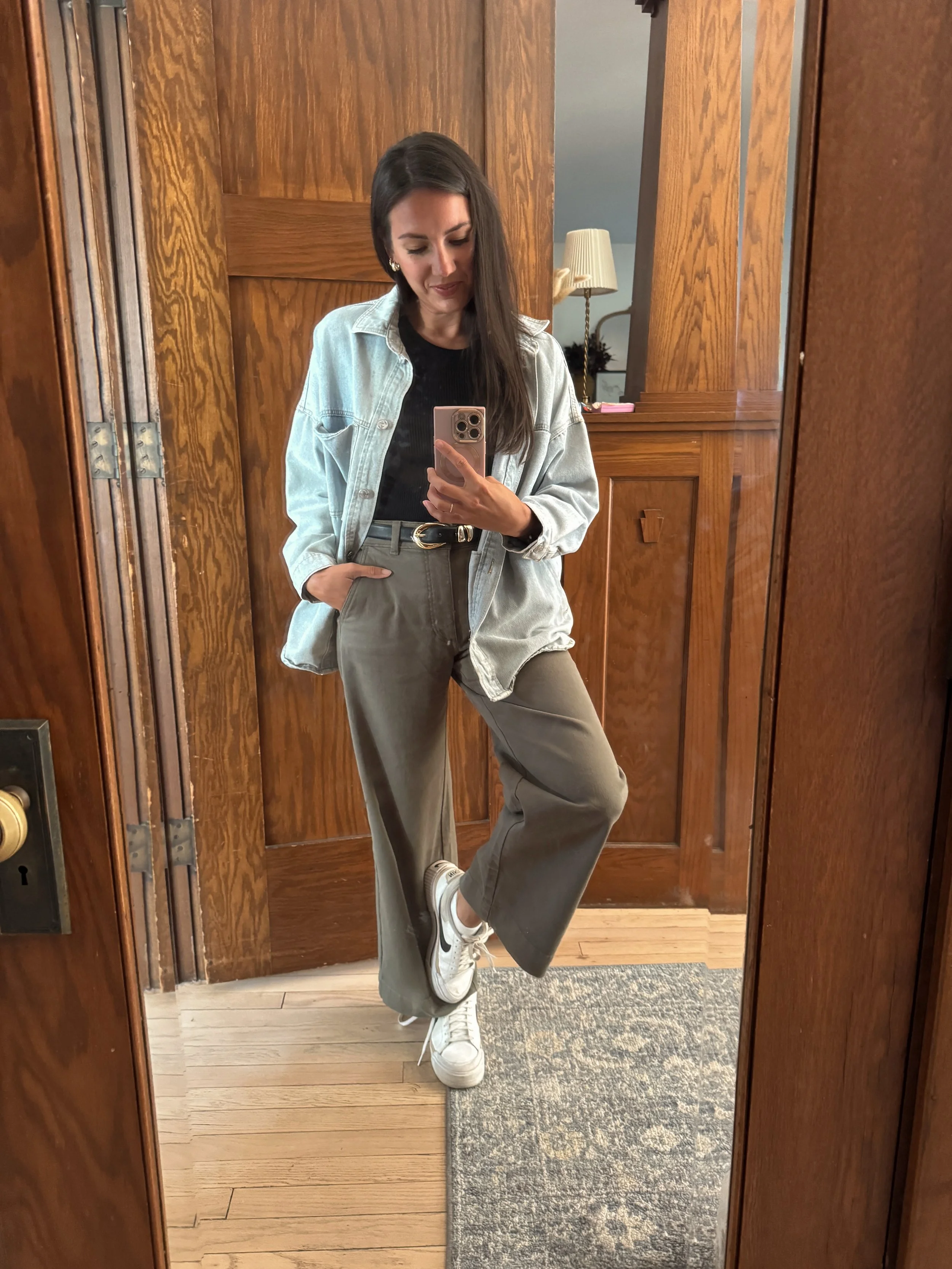 Modern Parent Trap Outfit | Denim Jacket, Trousers & Sneakers